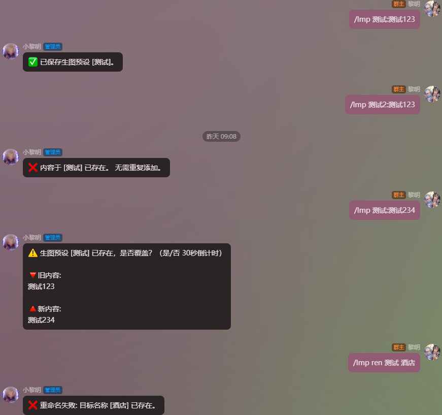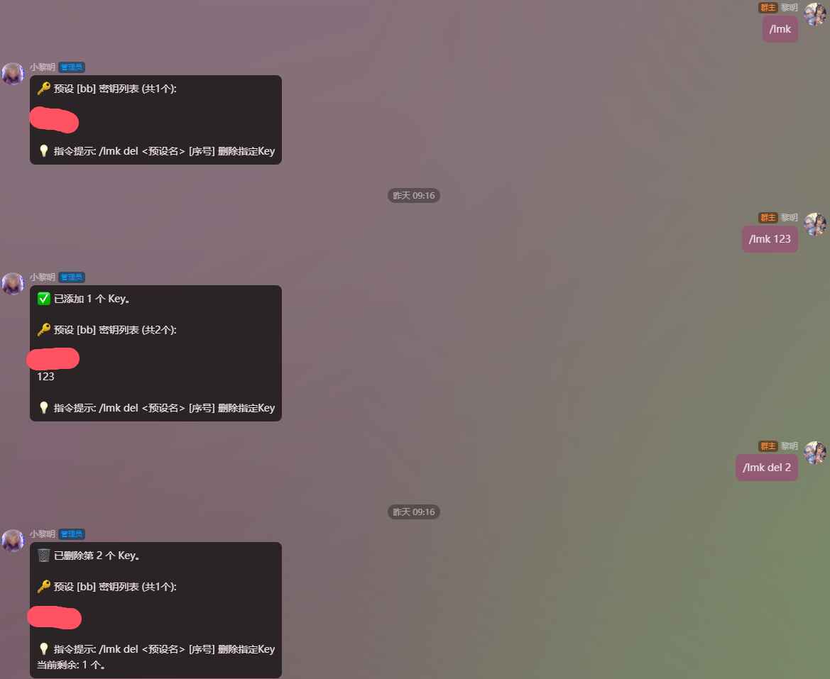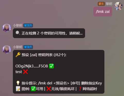 ⚠修改<连接预设名>请使用 #lmc ren ;管理[密钥]请使用 #lmk 指令组