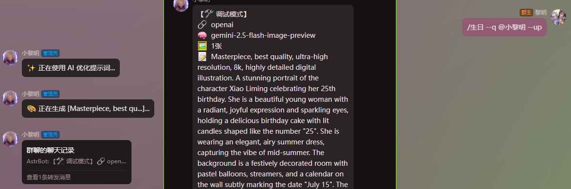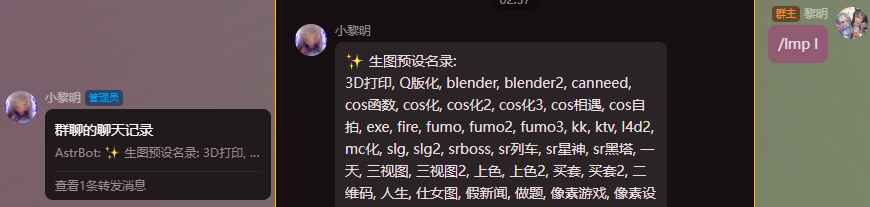 ⚠小心刷屏:√生成后撤回等待词 √定时撤回生成结果 √已内置合并转发 建议配合AstrBot 长文本转发功能 使用