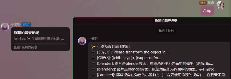插件默认自定提示词图生图前缀为 lmi(可在配置中修改)